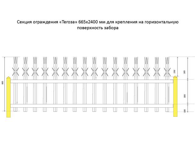 «ТЕГОЗА» - это металлический забор, который устанавливается на существующее сплошное бетонное или кирпичное ограждение вместо колючей проволоки.